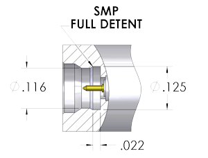 The male is also the typical PC board mount connector.  The SMP male connector is made in 3 detent versions, and determines the retention force of the mated male to female pair.  The SMPM is available in full detent and smooth bore.
